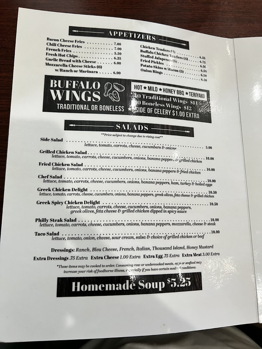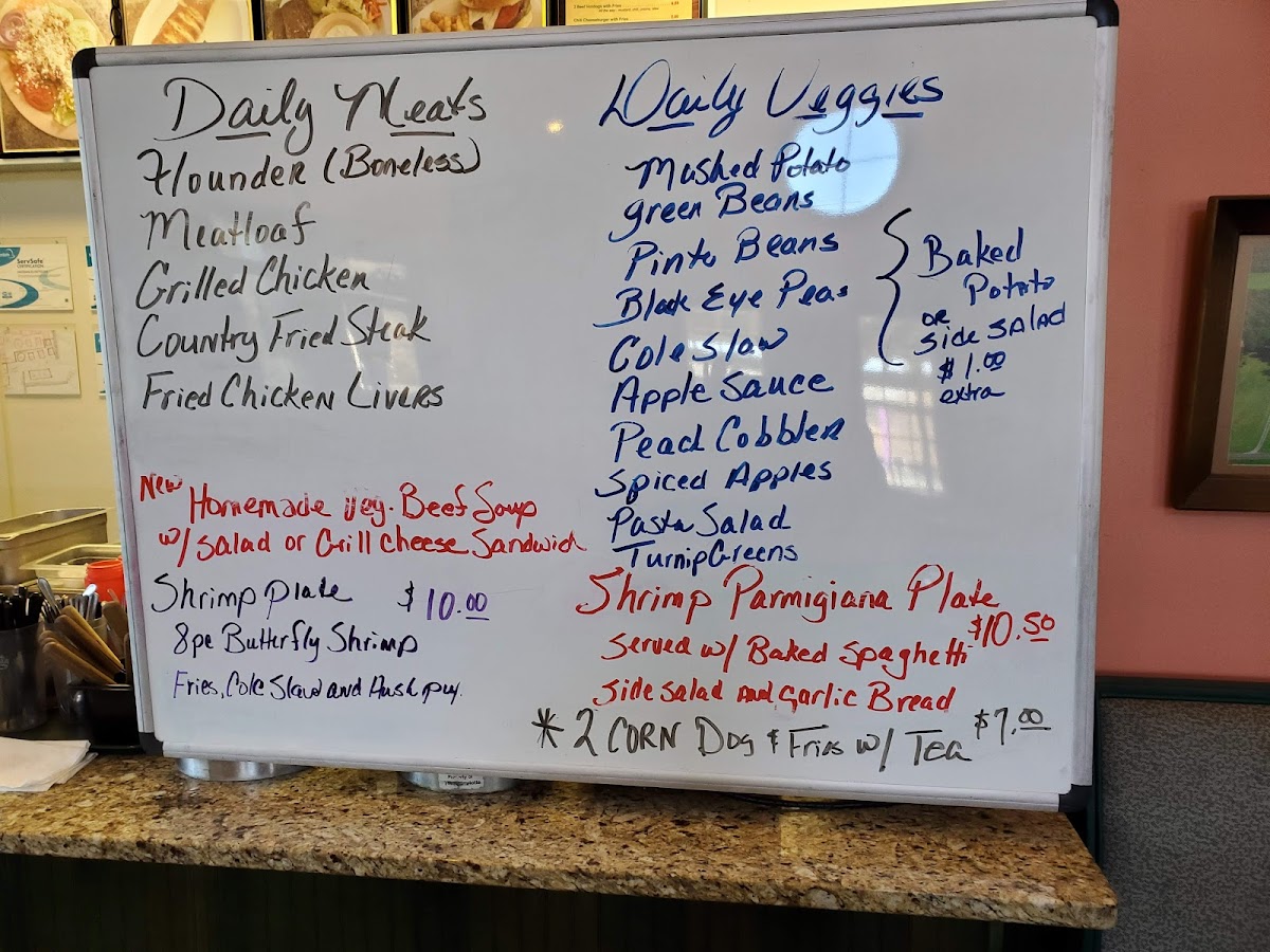 Start your meal with Fried Chicken Salad or dive into a hearty Taco Salad for just $10.00. Don't miss out on the savory flavors of our daily specials, featuring grilled meats and homemade desserts that elevate your dining experience. With items like Gyro Platter and traditional Southern sides, there's something for everyone, even unexpected Greek delicacies!